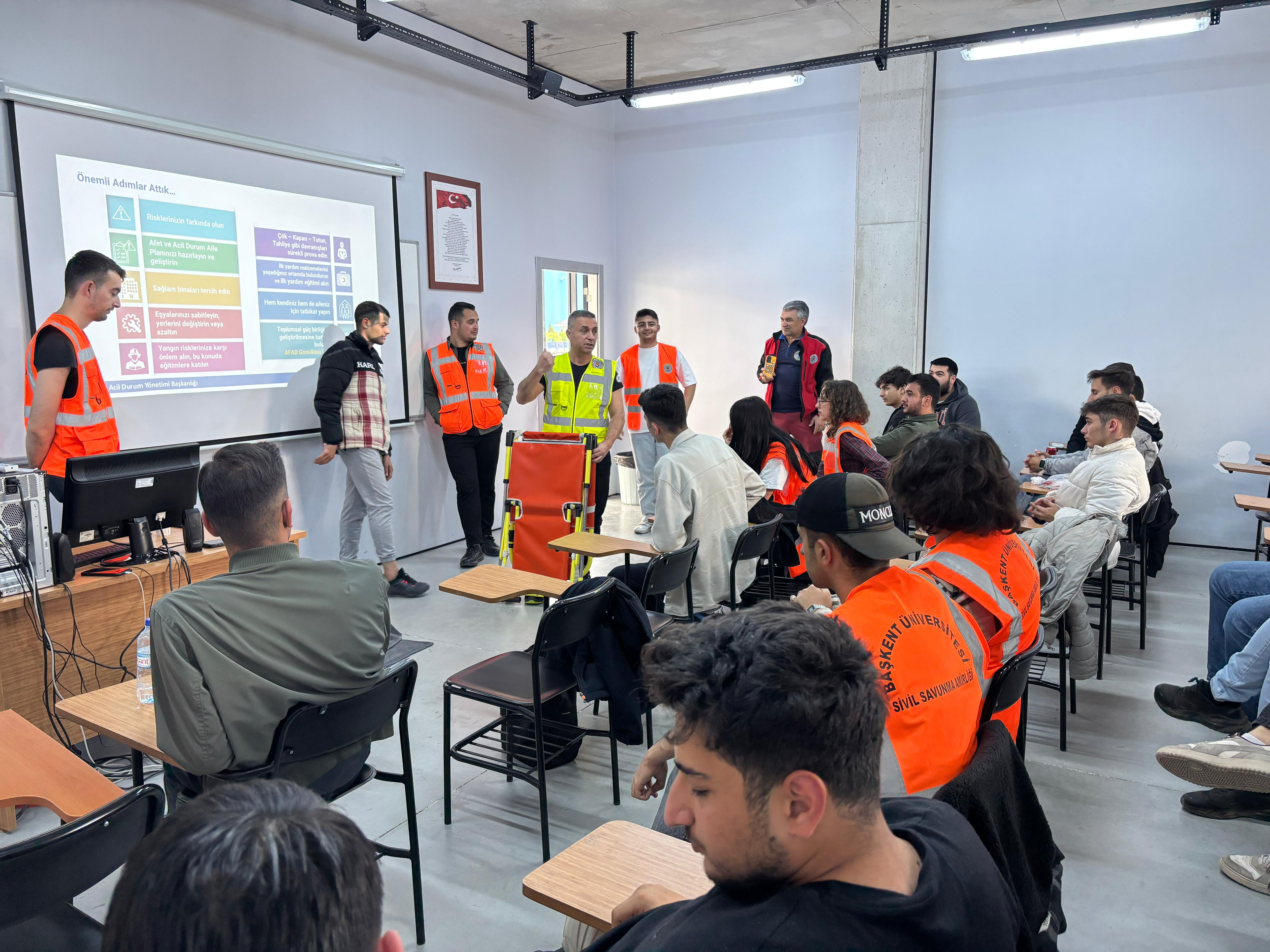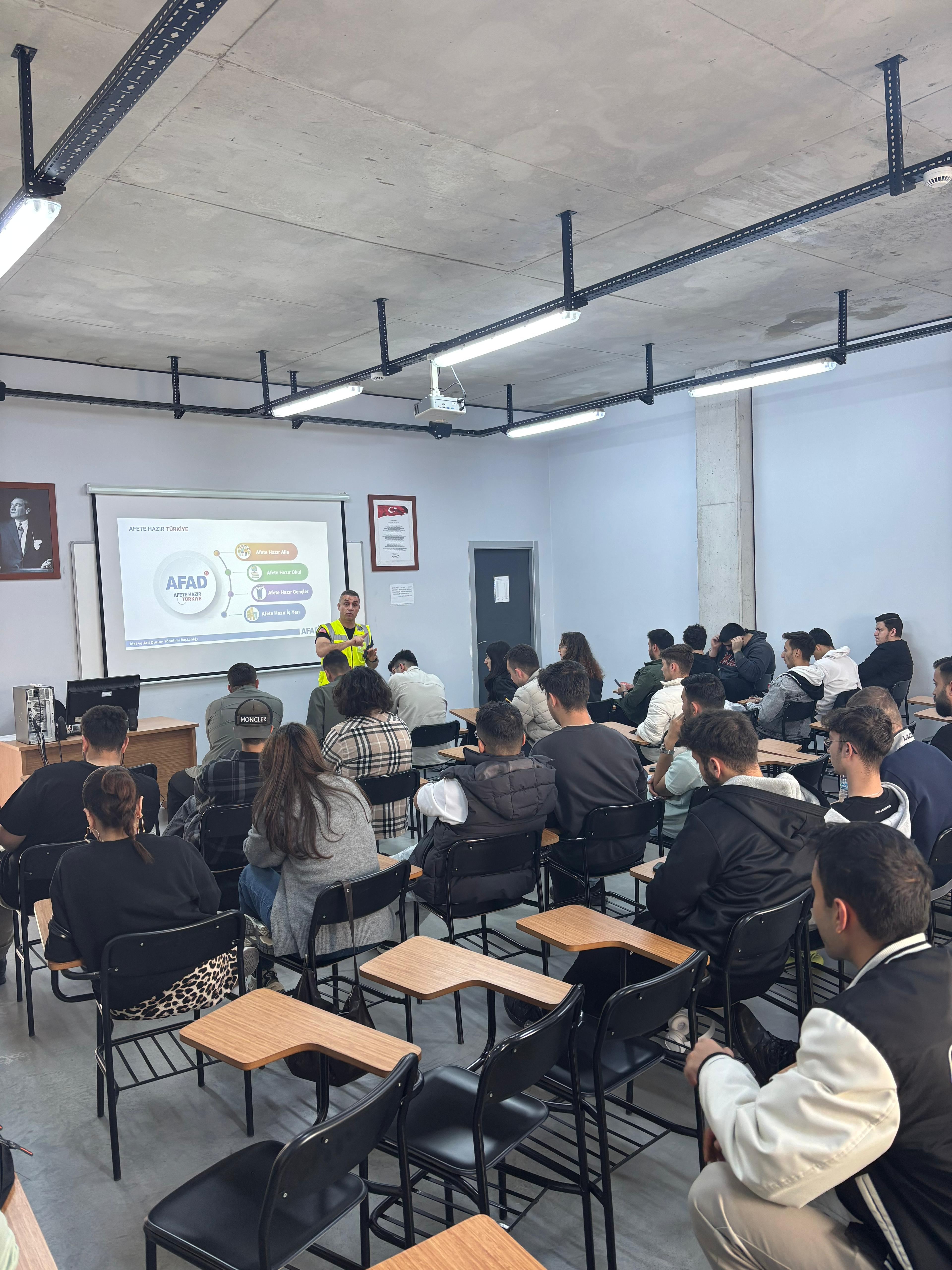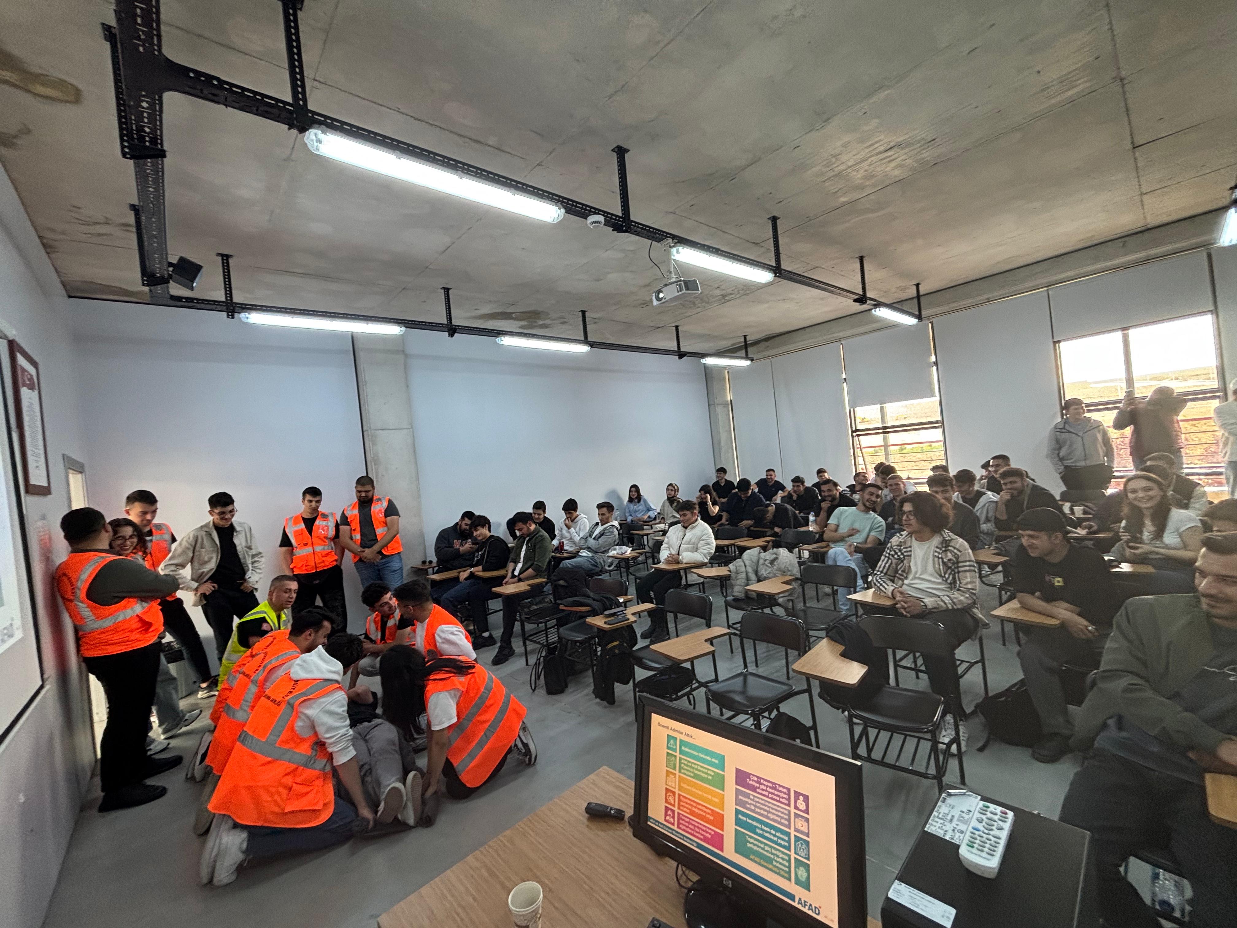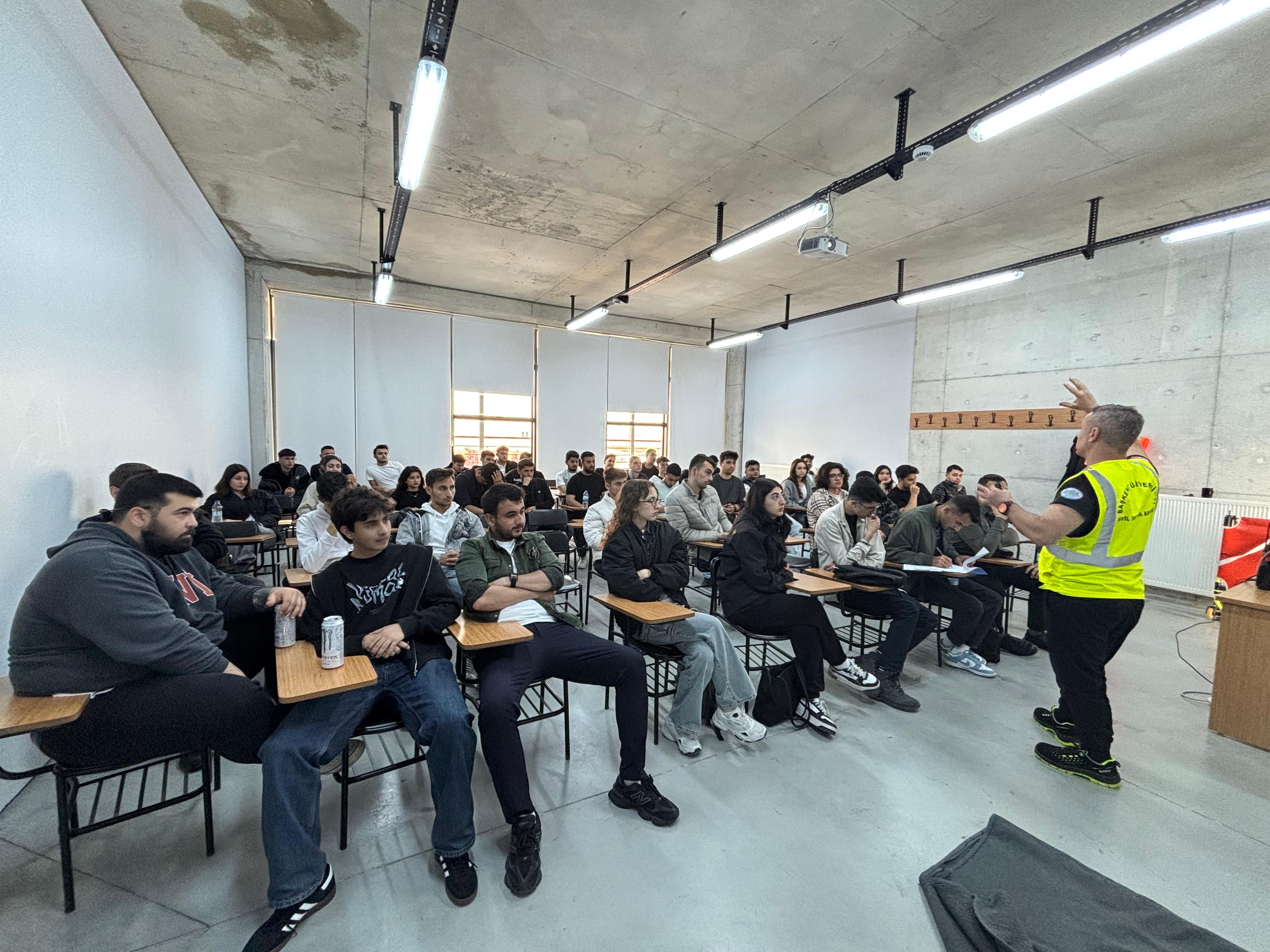 Başkent Üniversitesi Anadolu OSB MYO bünyesinde yer alan ders yürütücülüğünü Öğr. Gör. Yasemin ALAKOÇ BOZKURT sağladığı bütün programlarına zorunlu dersi olan AOSB104 İŞ HUKUKU, ETİĞİ VE GÜVENLİĞİ dersi kapsamında iç paydaşımız olan Başkent Üniversitesi Sivil Savunma Amirliği bünyesinde çalışan kısım amiri Ali ÜNAL ve sivil savunma uzmanı Cafer ÇATALOĞLU tarafından 14/05/2025 tarihinde "Afet Farkındalık Eğitimi" gerçekleştirilmiştir.