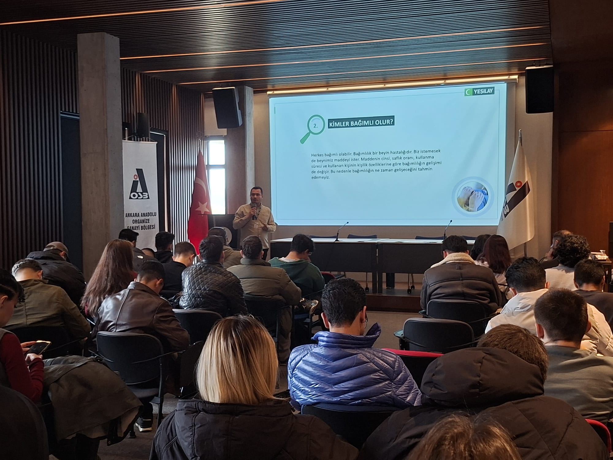 Başkent Üniversitesi Anadolu OSB MYO öğrencilerine yönelik Bağlamlılıkla Mücadele Semineri 24/11/2025 Pazartesi Günü saat 13:30'da Anadolu OSB Konferans Salonunda gerçekleştirilmiştir. İlgili seminerde ilk olarak Ankara İl Jandarma Komutanlığı Narkotik Suçlarla Mücadele Şube Müdürlüğü’nden Jandarma Yüzbaşı Sn. Cesur UCAKAN "Madde Bağımlılığı İle Mücadele Eğitimi" konusunda öğrencilerimize sunumlarını gerçekleştirmiştir. Devamında Yeşilay Danışma Merkezi'nden Psikolog Sn. Musa AKYOL "Sigara, Alkol, Madde, Teknoloji ve Davranışsal Bağımlılıklar & Yeşilay Danışma Merkezinin İşleyişi" konusunda öğrencilerimizi bilgilendirmişlerdir. Değerleri bilgilendirmeleri için Sn. Cesur UCAKAN ve Sn. Musa AKYOL'a teşekkür ederiz.