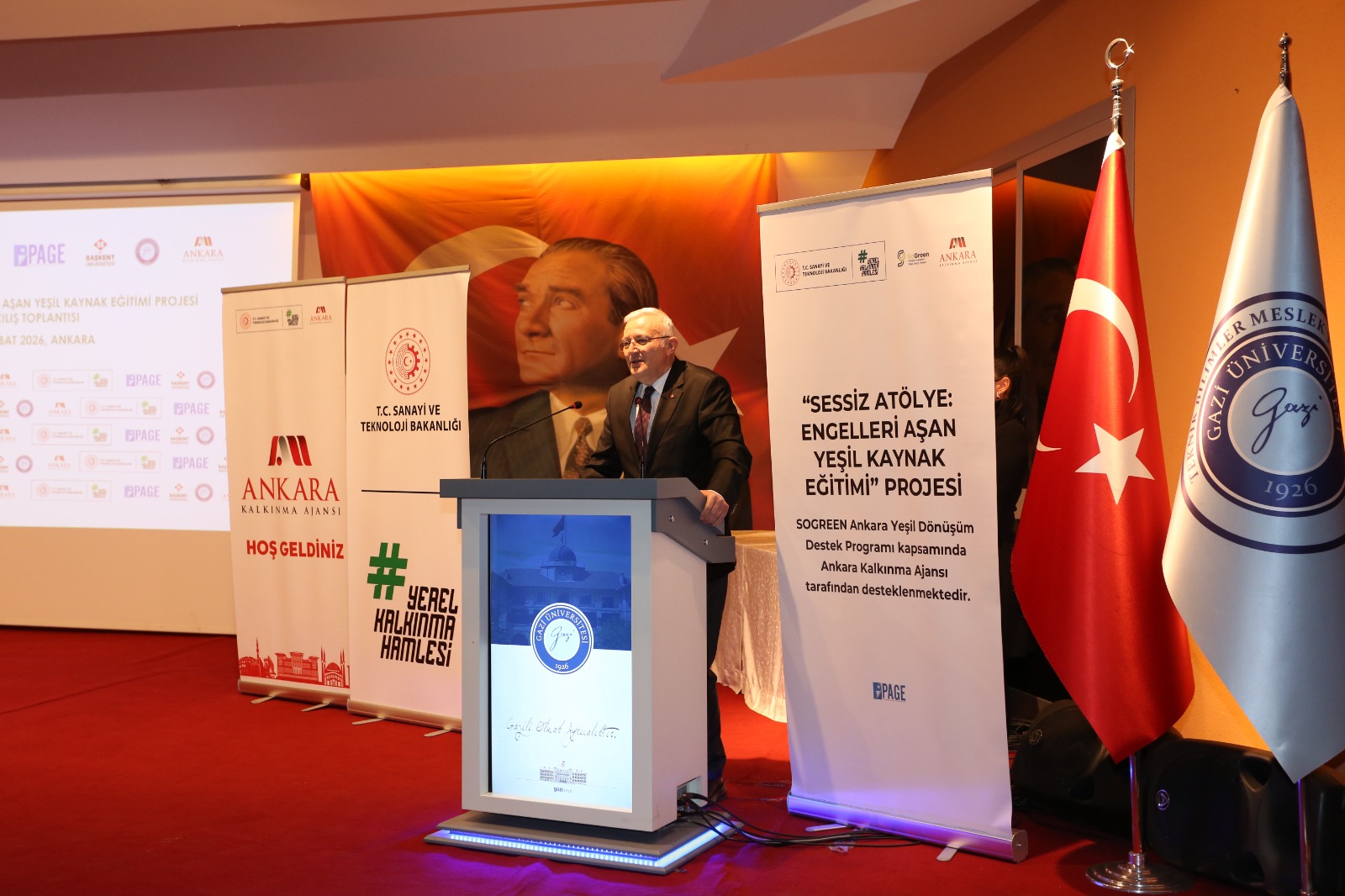 Projenin 16 Şubat 2026 Pazartesi günü Gazi Üniversitesi Teknik Bilimler Meslek Yüksekokulu Konferans Salonunda yapılan açılış töreni, Gazi Üniversitesi Teknik Bilimler Meslek Yüksekokulu Müdürü Prof. Dr. Alpay ÖZER’in açılış konuşmasıyla başlamış, sırasıyla, Türkiye Sağırlar Konfederasyonu Başkanı Orkun UTSUKARCI, Kalkınma Ajansı Genel Sekreteri Av. Dr. Ruhan KALKAN, Başkent Üniversitesi Rektörü Prof. Dr. Hakan ÖZKARDEŞ, Gazi Üniversitesi Rektörü Prof. Dr. Uğur ÜNAL’ın proje hakkındaki bilgilendirmeleri ve görüşlerini içeren konuşmalarıyla devam etmiştir.